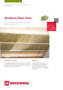 Rocksono Base Vario is een lichte, veerkrachtige rotswolplaat (ca. 35 kg/m³) met zeer goede thermische, akoestische en brandwerende eigenschappen.