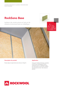 Rocksono Base is een lichte en veerkrachtige rotswolplaat (ca. 35 kg/m³), geschikt voor thermische, geluidsisolerende en brandwerende vulling in metalen en houten binnen- en voorzetwanden.