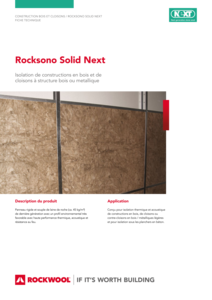 Rocksono Solid Next is een stevige, veerkrachtige rotswolplaat (ca. 45 kg/m³) met zeer goede thermische, akoestische en brandwerende eigenschappen.