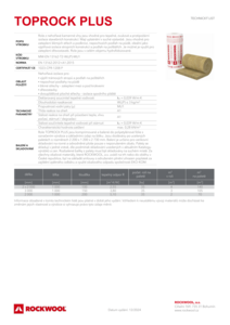 - Pásy TOPROCK PLUS jsou ideální izolací za skvělou cenu v poměru k tepelněizolačním vlastnostem produktu a množství vláken kamenné vlny obsažené v pásu.