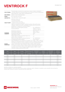 Nehořlavé desky VENTIROCK F z kamenné vlny s povrchovou úpravou černou netkanou sklotextílií jsou určené pro tepelné, protipožární a akustické izolace stavebních konstrukcí, především pro izolaci provětrávaných fasád, kazetových stěn nebo podhledů. Izolační desky s povrchovou úpravou netkanou sklotextílií jsou ideální pro provětrávané fasády s viditelnými spárami nebo perforovaným obkladem.