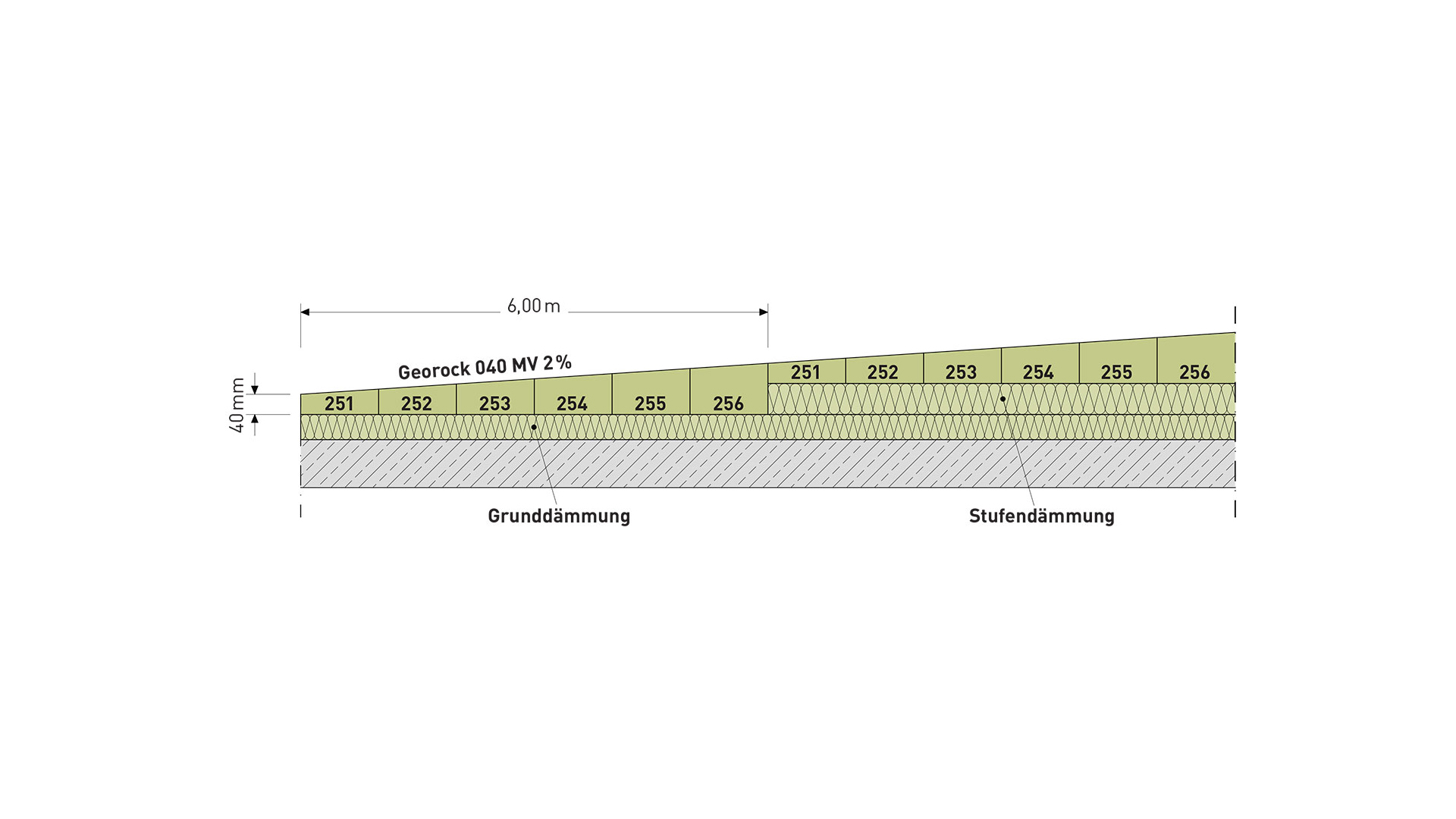 Zur Ausbildung eines Gefälles bei nicht geneigten Dachkonstruktionen oder für die nachträgliche Herstellung eines Gefälles in Verbindung mit Wärme-, Schall- und vorbeugendem Brandschutz bei einschaligen nicht belüfteten Flachdächern.