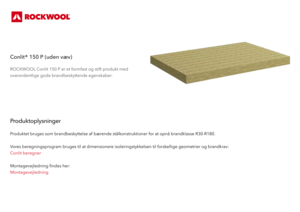 ROCKWOOL Conlit 150 P er et formfast og stift produkt med overordentlige gode brandbeskyttende egenskaber.