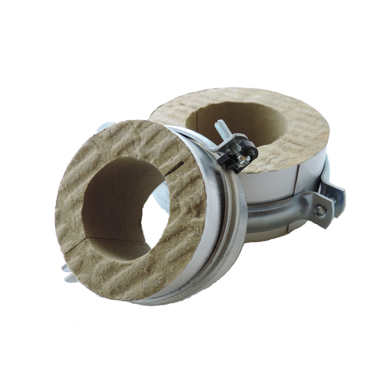 Den fleksible inderkerne gør at isoleringen nemt tilpasser sig vulste og kraver på fittings uden yderlig forarbejdning. Rørskålen er fremstillet af ubrændbar, fugt- og vandafvisende stenuld, og belagt med en forstærket aluminiumsfolie med et overlap af selvklæbende tape.