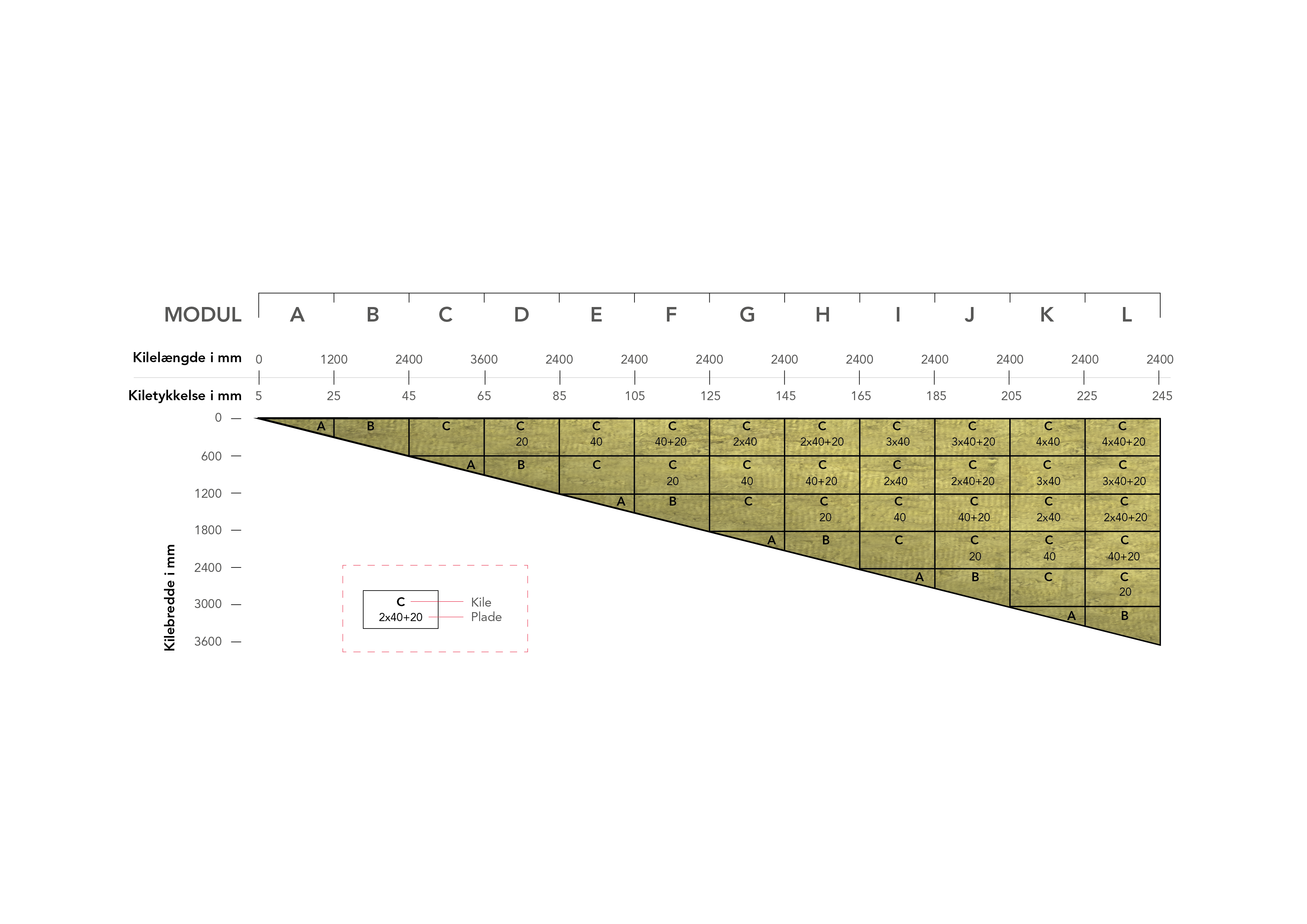 Som underlags plader anvendes 20 mm og 40 mm jf. tegningen.