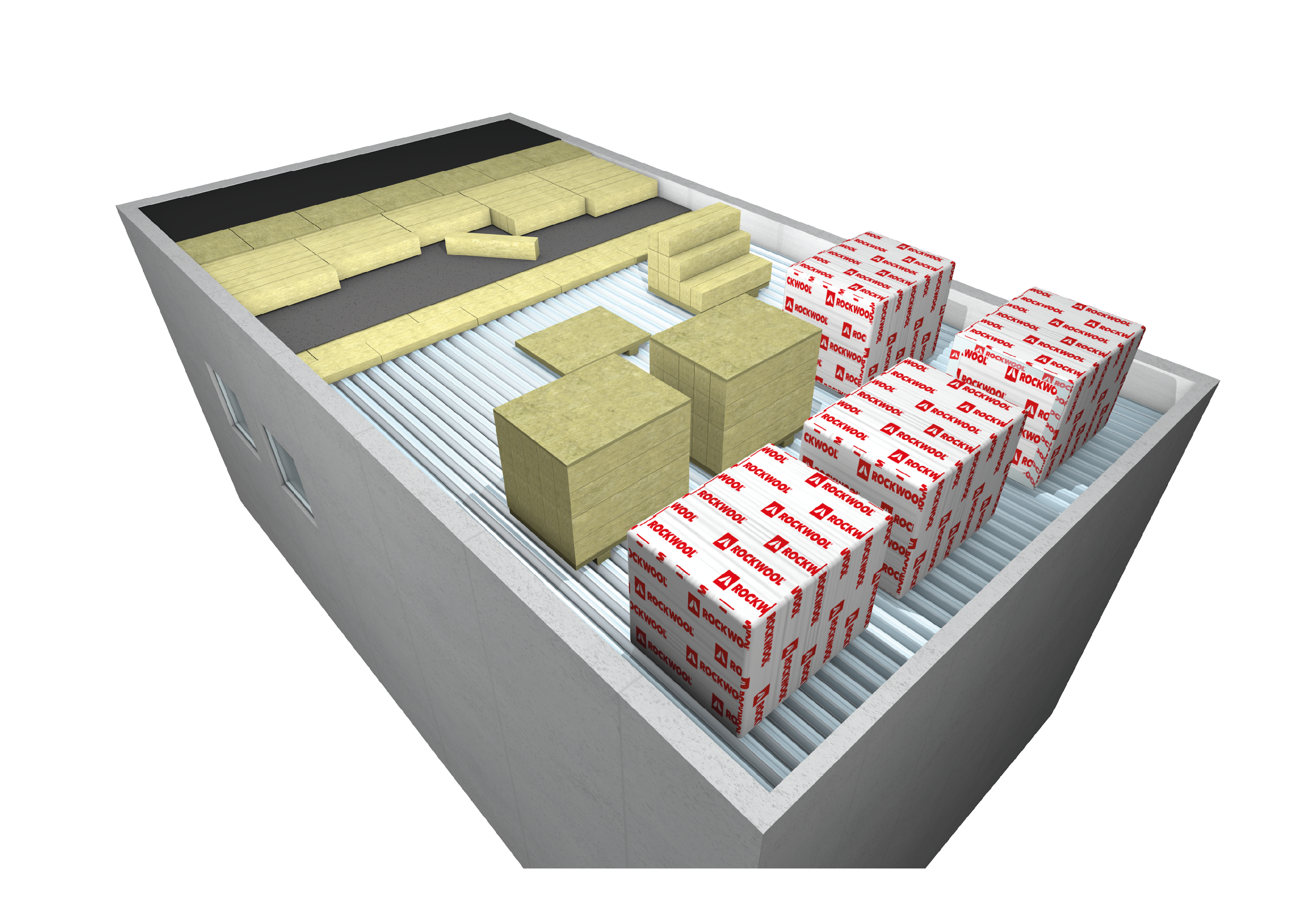 ROCKWOOL Toprock System er trædefast med CS(10) 25 kPa, Anbefales til udvendig isolering af flade tage med almindelig gangtrafik.