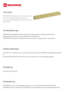 ROCKWOOL Trekantlister findes i 2 dimensioner, trekantslister er ucoated, fremstillet af ubrændbar, fugt- og vandafvisende ROCKWOOL stenuld.