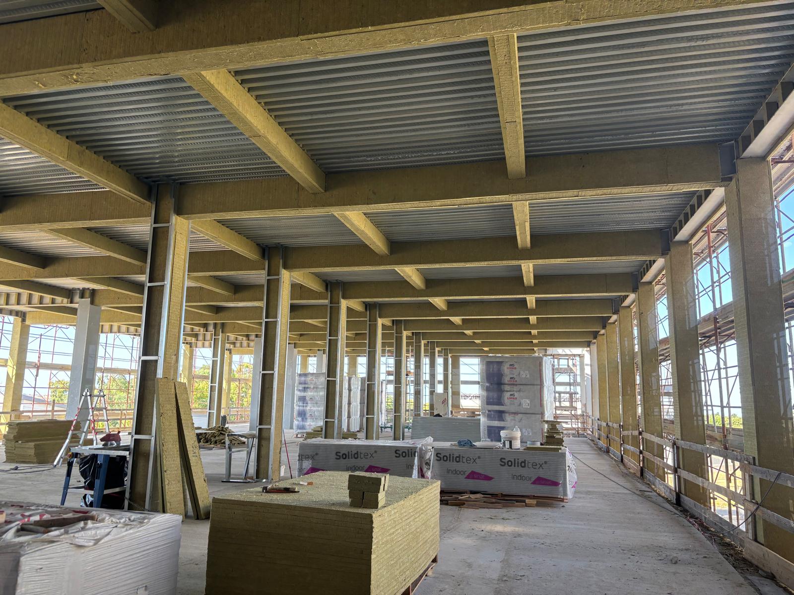 Panel rígido de lana de roca de alta densidad, sin revestir, para la protección contra incendios de elementos estructurales de acero.
