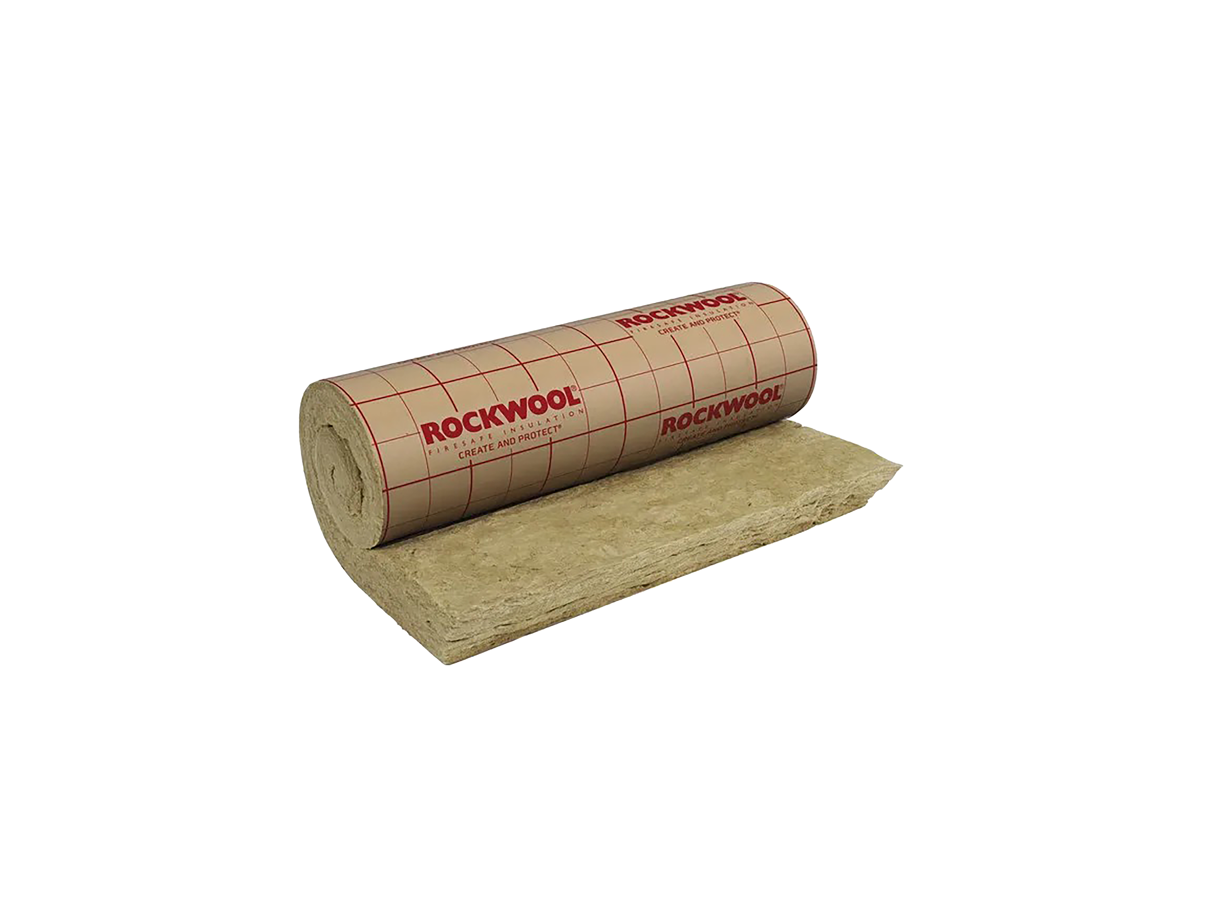 Rouleau isolant en laine de roche, revêtu d’un kraft polyéthylène.