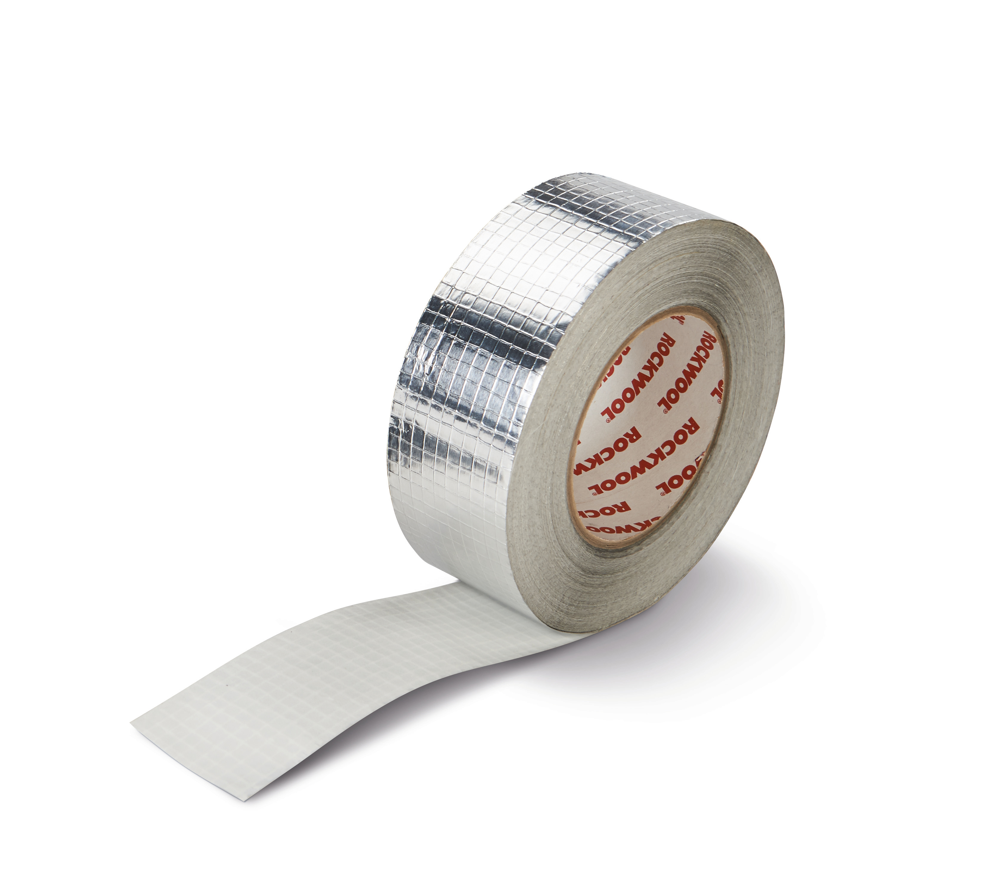 Coquille concentrique en laine de roche pourvue d'une feuille d'aluminium renforcée de fibres de verre et d'une languette autocollante.