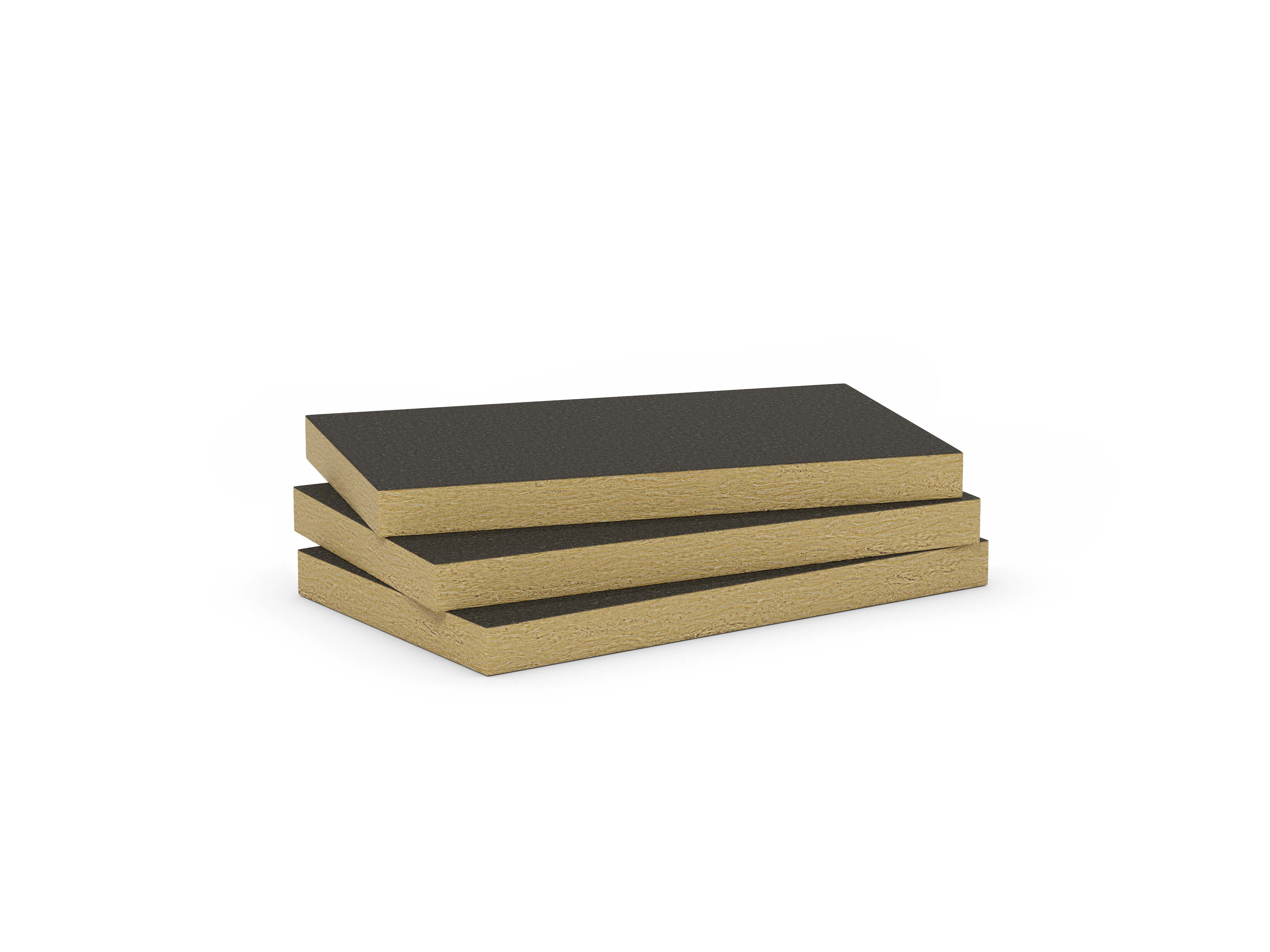 Pannello rigido in lana di roccia ad alta densità, ad elevata resistenza a compressione, rivestito su un lato da uno strato di bitume, per l’isolamento termico e acustico di coperture piane (tetto caldo).