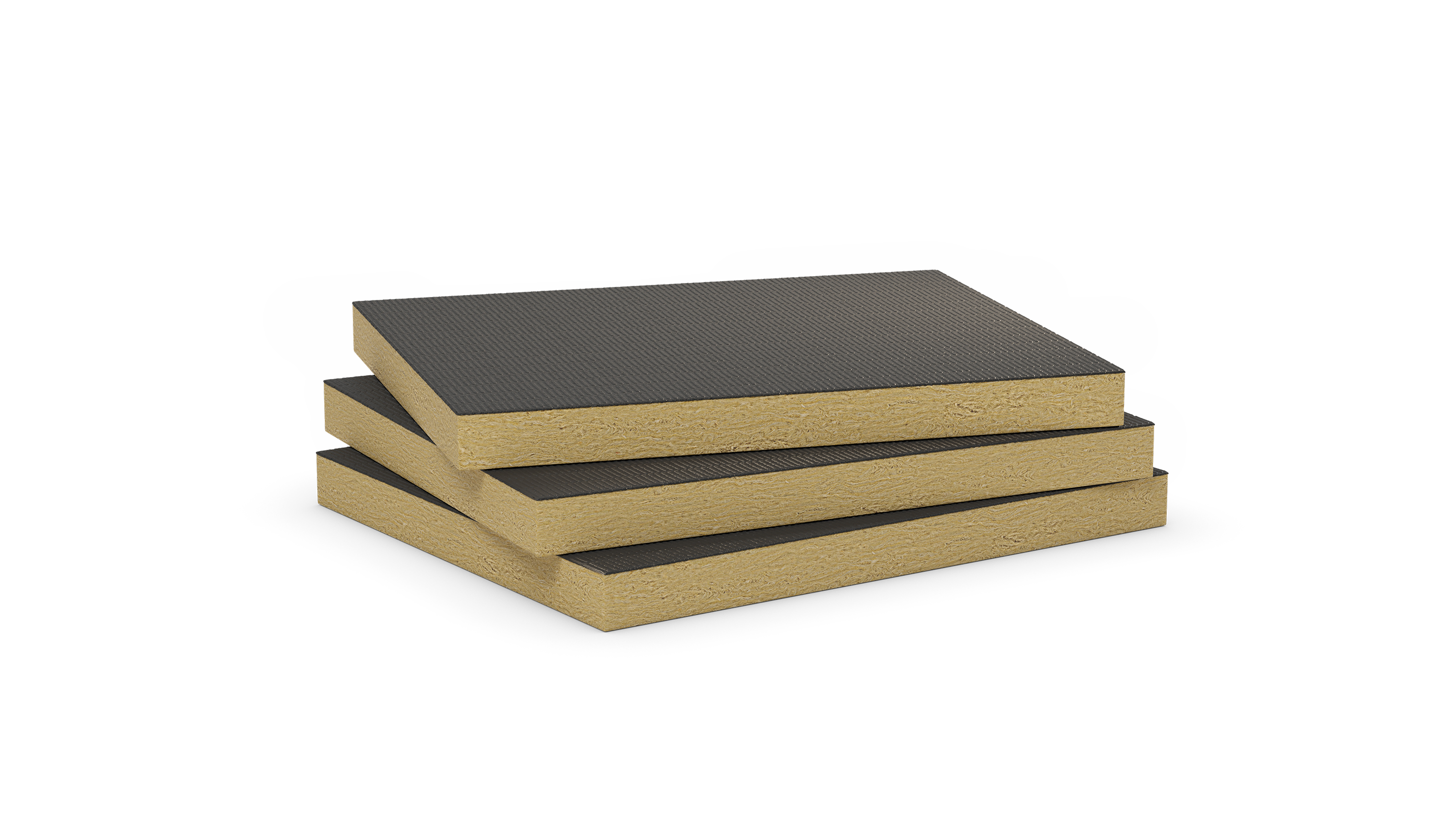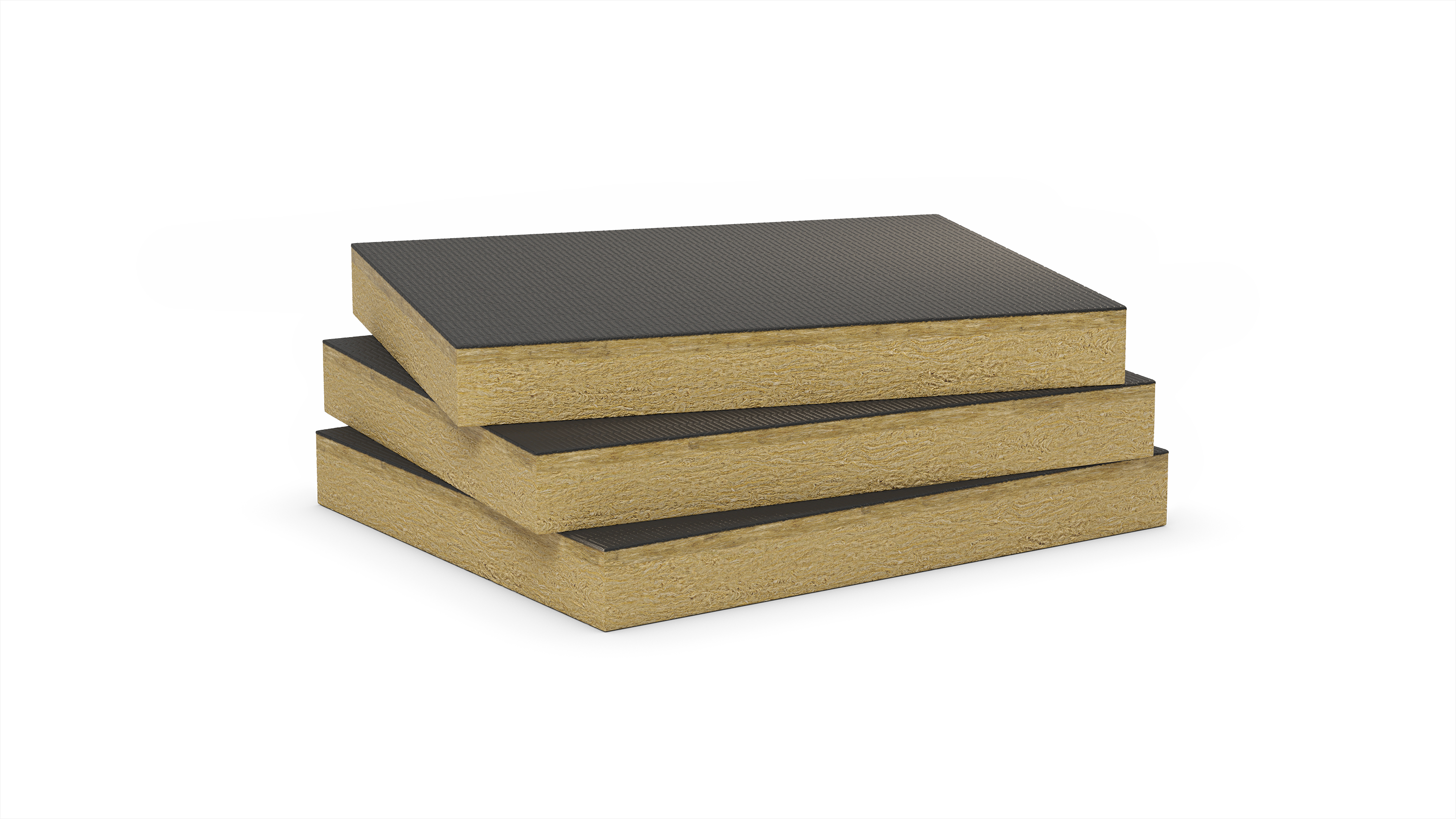 Pannello rigido in lana di roccia a doppia densità, ad elevata resistenza a compressione, rivestito su un lato da uno strato di bitume, per l’isolamento termico e acustico di coperture piane (tetto caldo).