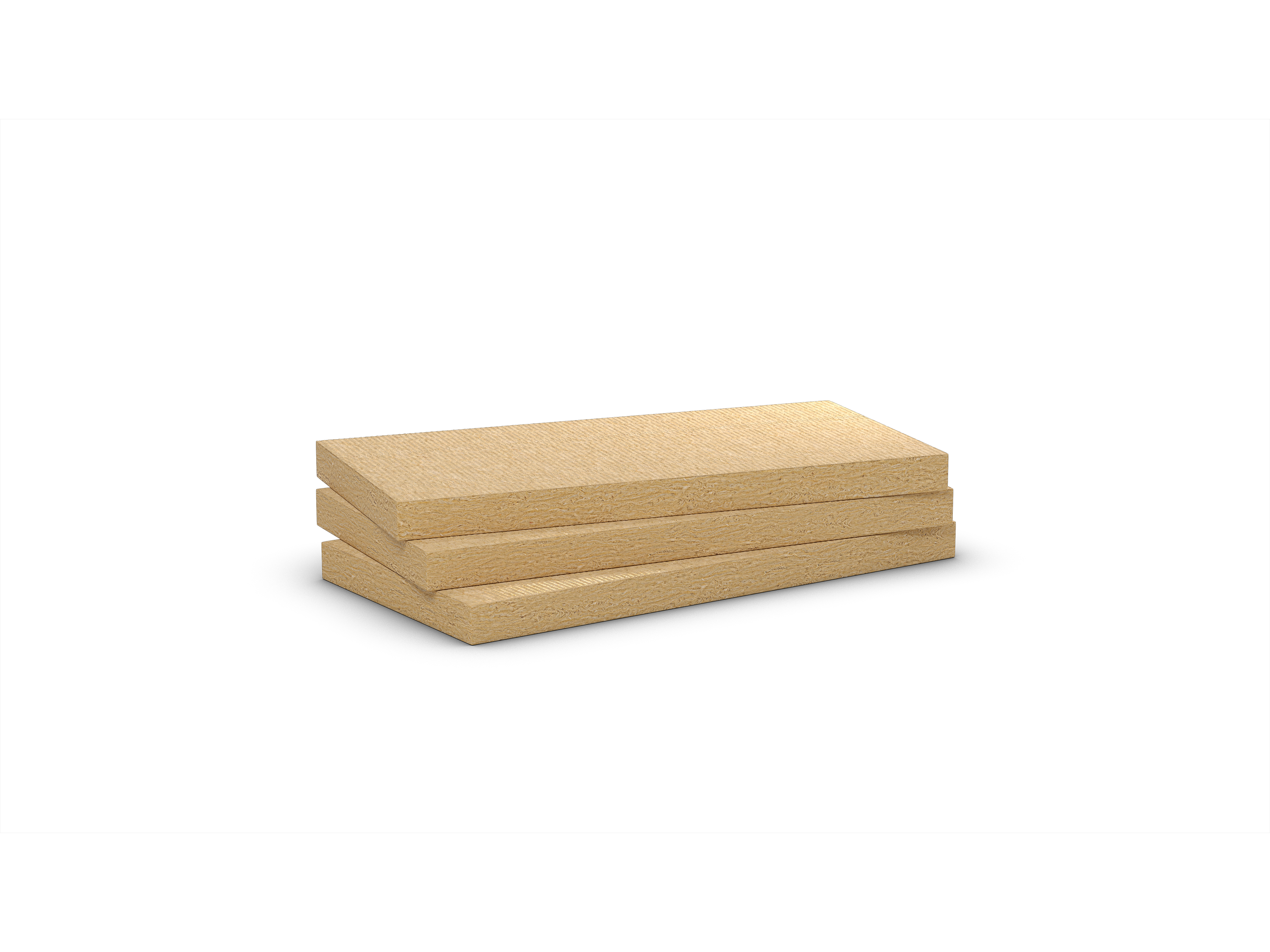 Pannello rigido in lana di roccia non rivestito a doppia densità, ad elevata resistenza a compressione, per l’isolamento termico, acustico e la sicurezza in caso di incendio di coperture inclinate e piane (tetto caldo).