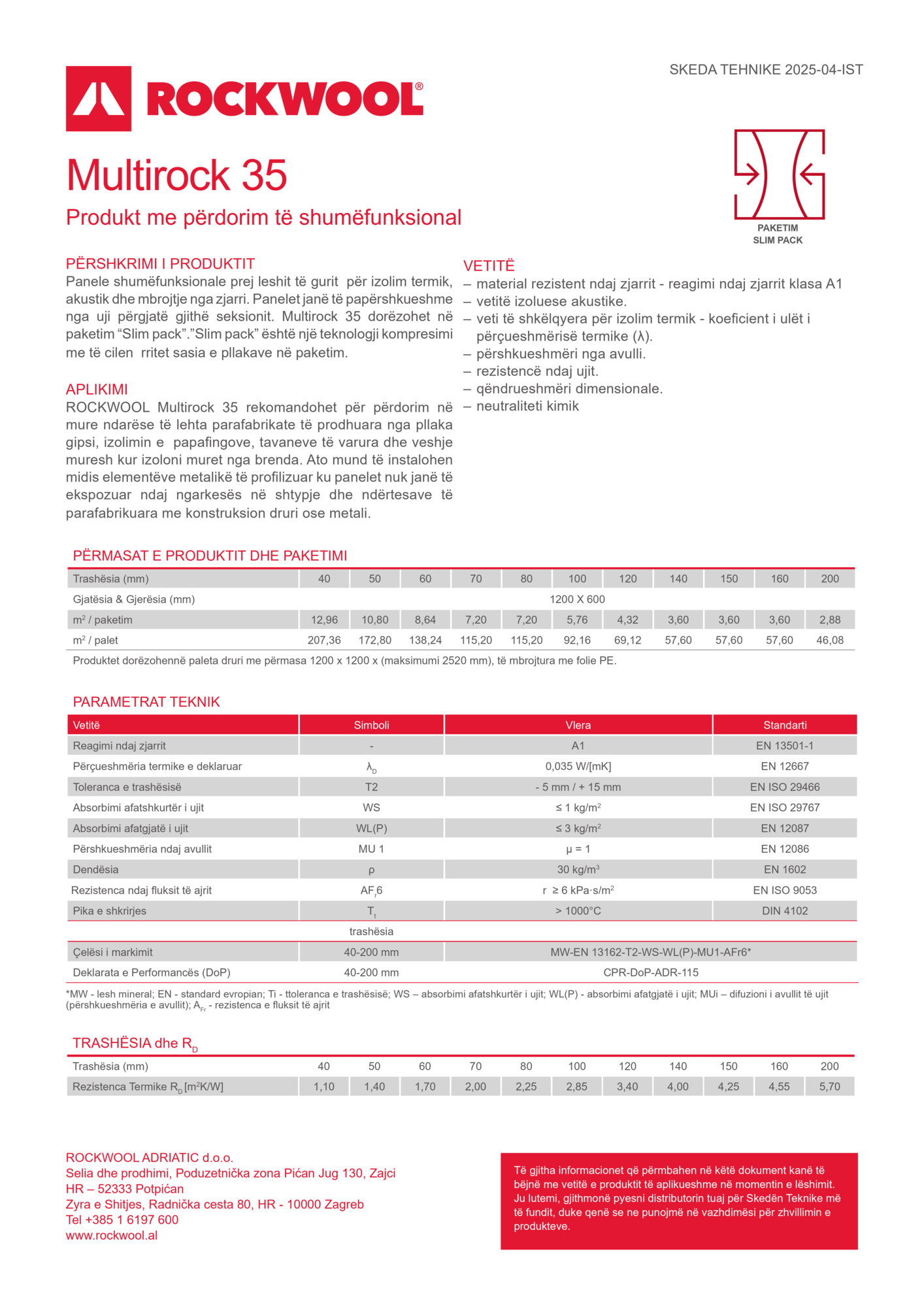 Multirock 35 është panel leshi guri me densitet të ulët dhe çmim të përballueshëm, i përshtatshëm për izolimin e mureve, dyshemeve dhe tavaneve. Ofron mbrojtje të besueshme termike, akustike dhe kundër zjarrit në ndërtimet dhe rinovimet bazë. Dizajni i lehtë dhe shumëfunksionaliteti e bëjnë Multirock 35 një zgjedhje të shkëlqyer për projekte që vlerësojnë ekonominë dhe kërkojnë nivele standarde rehatie, sigurie dhe izolimi të brendshëm.