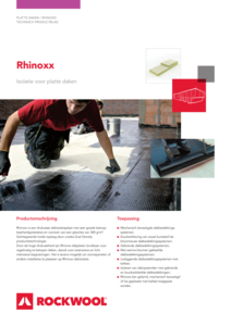 Rhinoxx is dé platdak isolatieplaat van ROCKWOOL, waarop zowel gebrand als koud verkleefd kan worden en die optimaal beloopbaar is dankzij de unieke Dual Density technologie met glasvliescachering. Rhinoxx is gemakkelijk te verwerken en veilig, want de isolatieplaat heeft Euro-brandklasse A2-s1, d0. Bovendien is Rhinoxx perfect dimensiestabiel met een hoge windweerstand en van nature circulair.