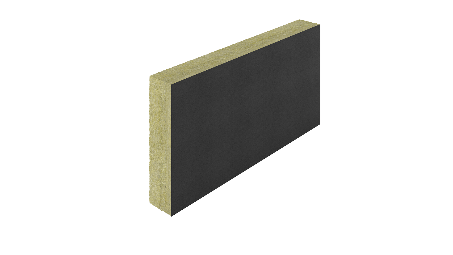 Rockvent Solid black is een extra stevige en waterafstotende isolatieplaat (ca. 50 kg/m³) met hoge thermische prestatie, voorzien van een zwart mineraalvlies voor een schaduweffect.