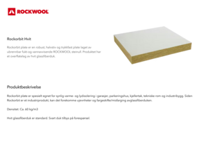 Rockorbit plate er en robust, halvstiv og trykkfast plate laget av ubrennbar fukt-og vannavvisende ROCKWOOL steinull. Produktet har et overflatelag av hvit glassfiberduk.