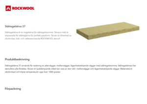 Stålregelskiva 37 används för isolering av ytterväggar, mellanväggar, lägenhetsskiljande väggar med stålregelstomme. Stålregelskivan har stenullens alla fördelar. Skivan är ljuddämpande vilket kan vara av stor vikt i mellanväggar och lägenhetsskiljande väggar. Materialet är obrännbart och klarar temperaturer upp över 1000 grader.