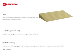 Takkil är en mycket styv och hård skiva tillverkad av obrännbar, fukt- och vattenavvisande ROCKWOOL stenull.