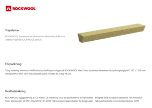 ROCKWOOL Trapetsstav är tillverkad av obrännbar, fukt- och vattenavvisande ROCKWOOL stenull.