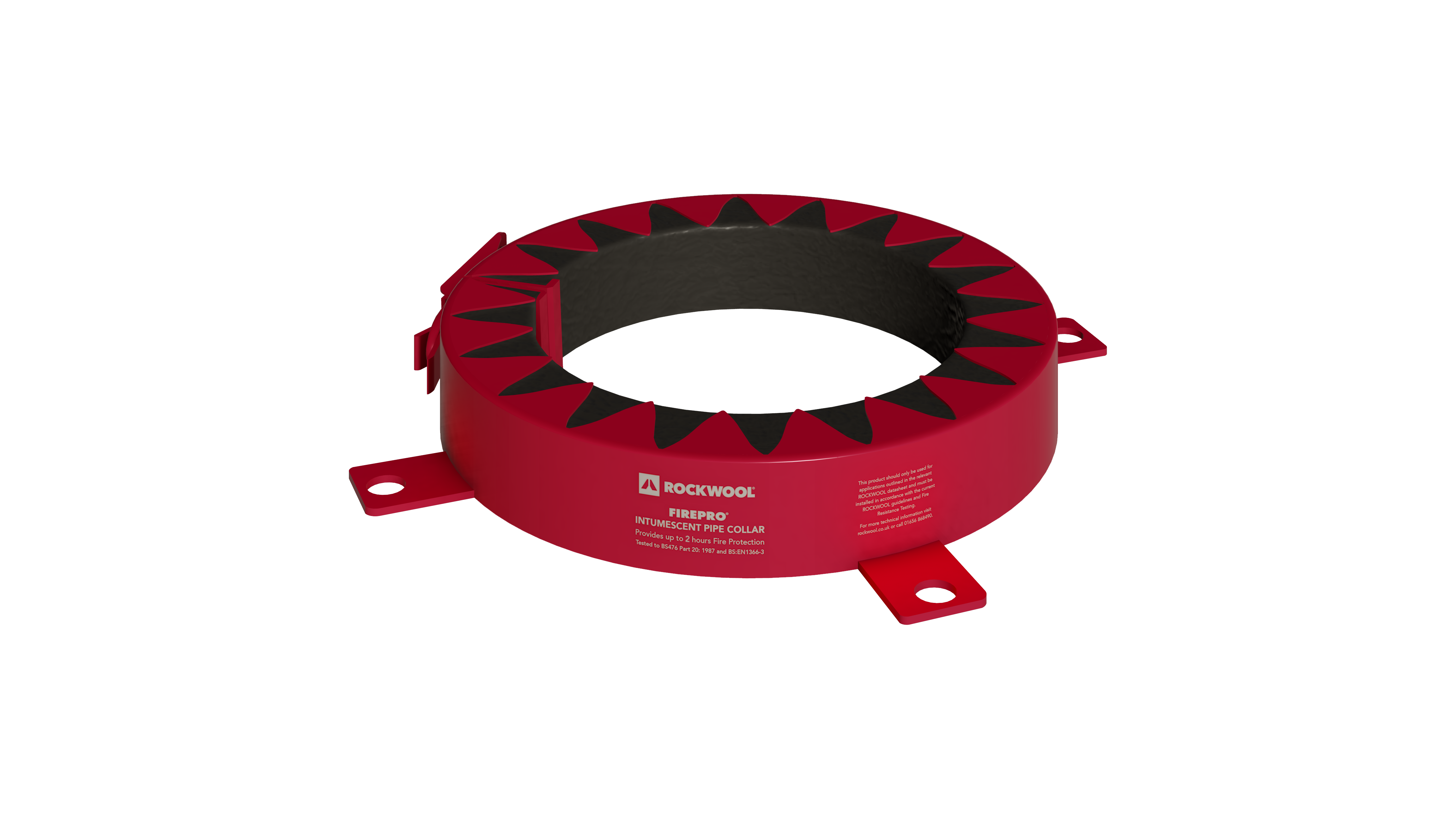 FirePro® Pipe Collar CE seals service penetration apertures containing plastic pipework by providing a high-volume expansion and pressure seal during a fire.
